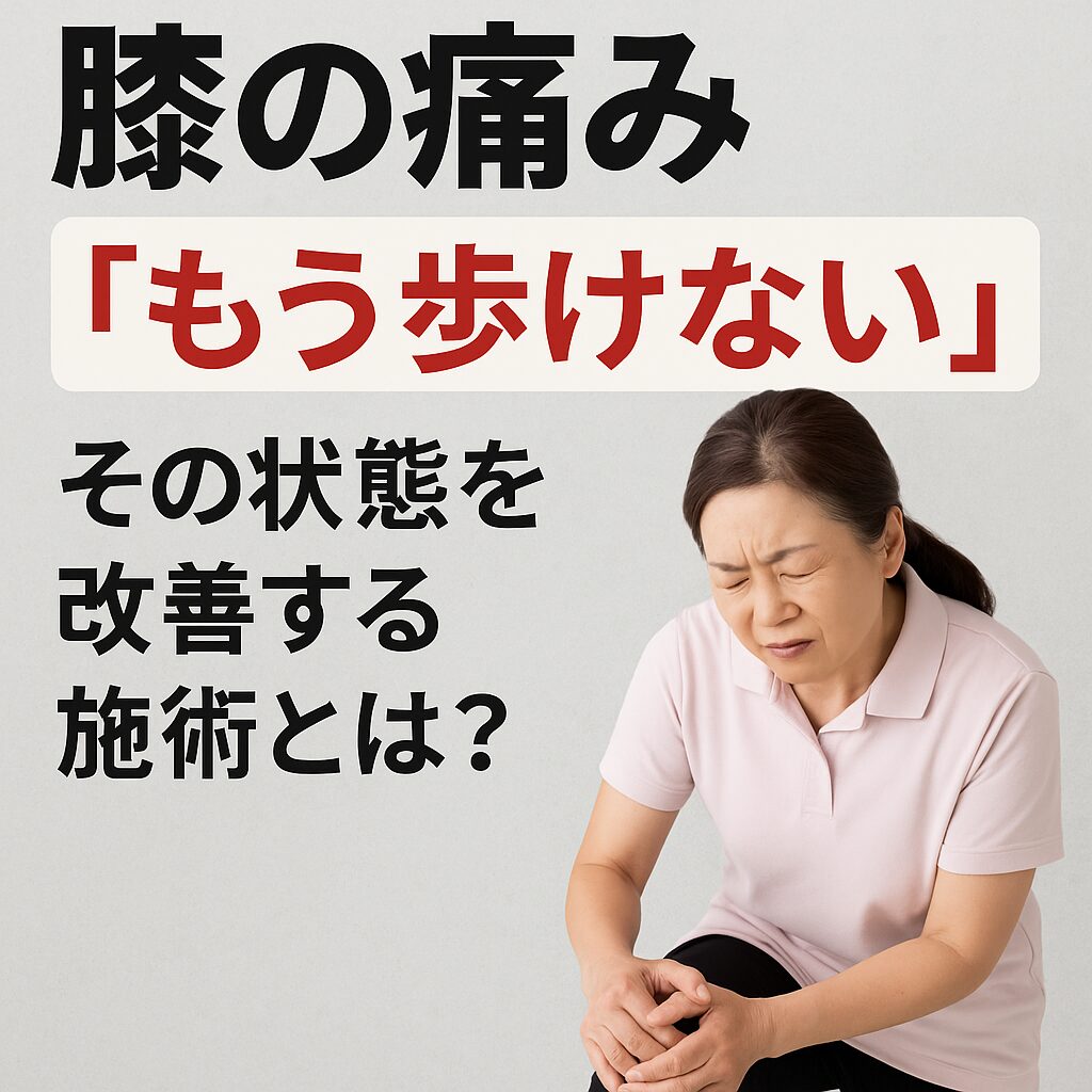 変形性膝関節症で痛みが強くても、「膝そのもの」ではなく「膝にかかる力の流れ」を変えることで、回復の可能性は十分にあります。