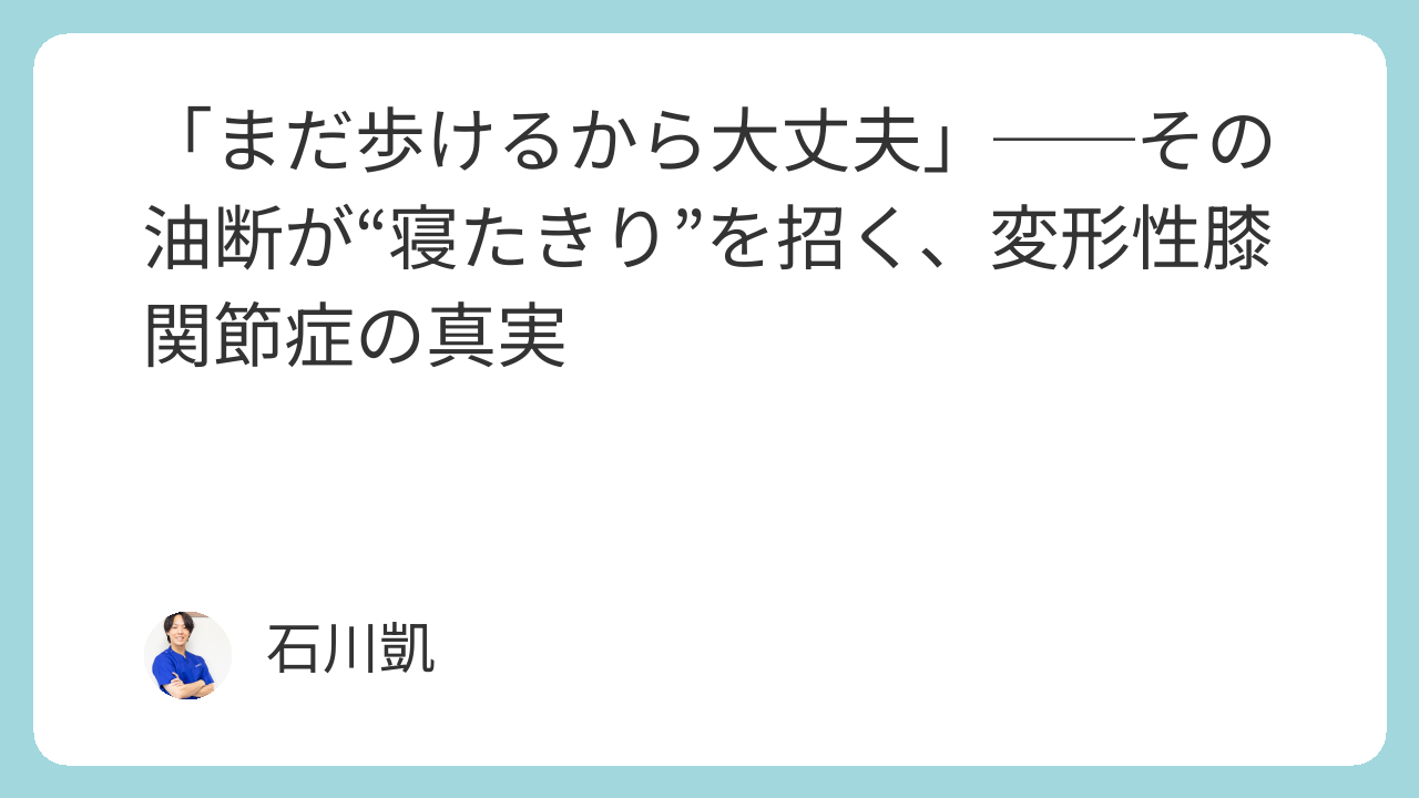それは**「軟骨のすり減り」ではなく、「体の構造バランス」が崩れているサイン**かもしれません。