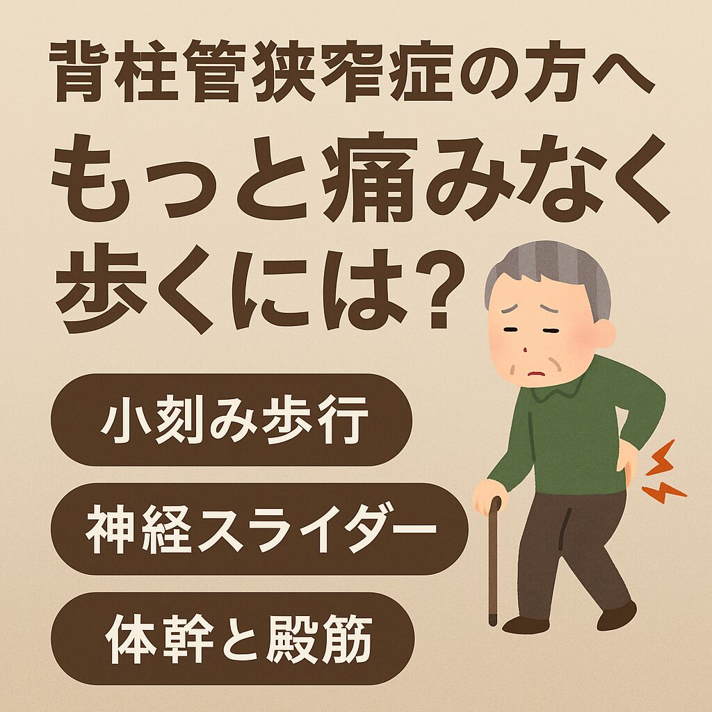 赤旗(急な筋力低下/排尿・排便障害)がなければ、小刻み歩行+前傾バイアス、神経スライダー、体幹・殿筋の協調、靴と足関節の見直しで「無痛歩行時間」は底上げできます。